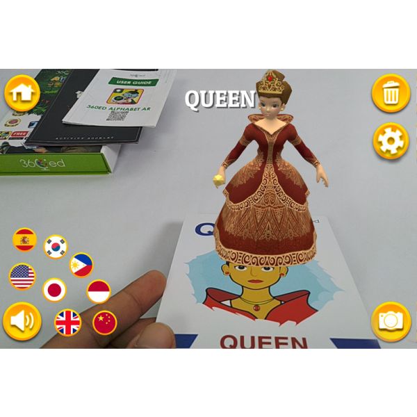 360ed Alphabet AR is a learning product that includes a FREE 4D Augmented Reality Application paired with colorful flashcards for young learners to easily learn the English alphabet and their first words including correct pronunciation.