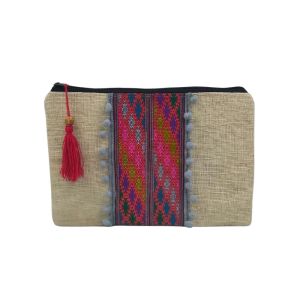 4. Kachin Cotton Large Zippered Pouch/Clutch - Cream (multiple design options)