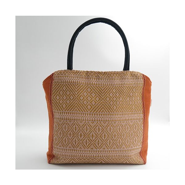 The large top handle bag has 2 zippered compartments inside and made with natural handwoven fabric. The jacquard pattern is made by weaving pattern onto the fabric.