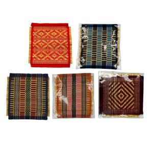 1. Set of 5 Handmade Bamboo and Cotton Coaster - Traditional Rakhine Design