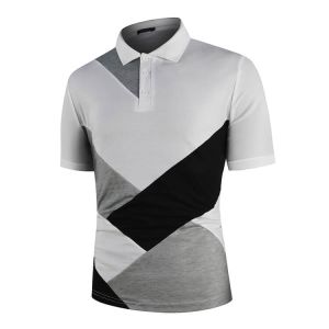 1. Men Fashion Color Blocking Patchwork Loose Breathable Polo Shirt